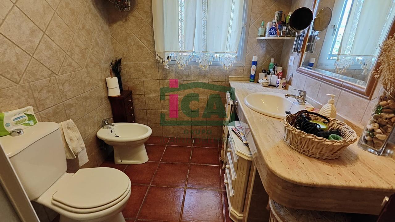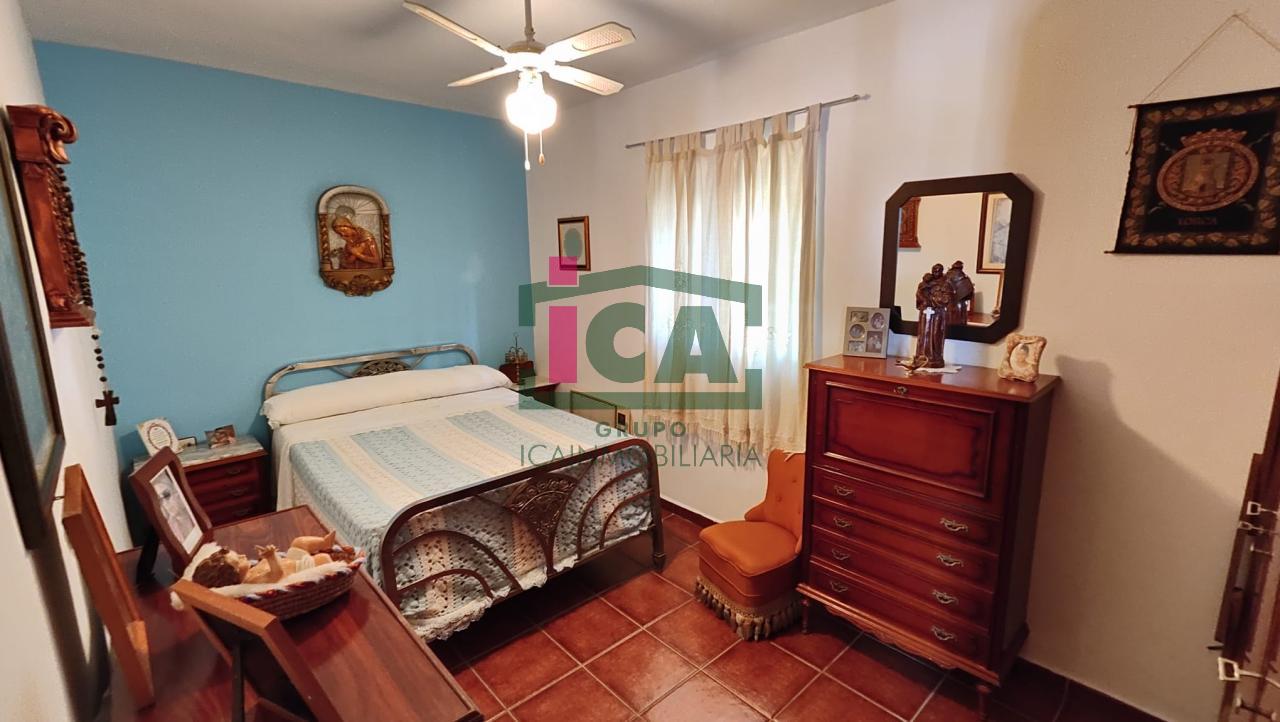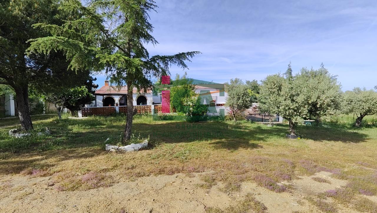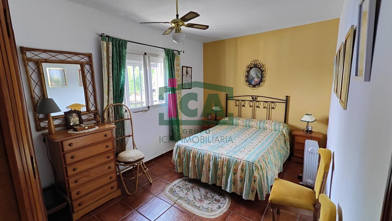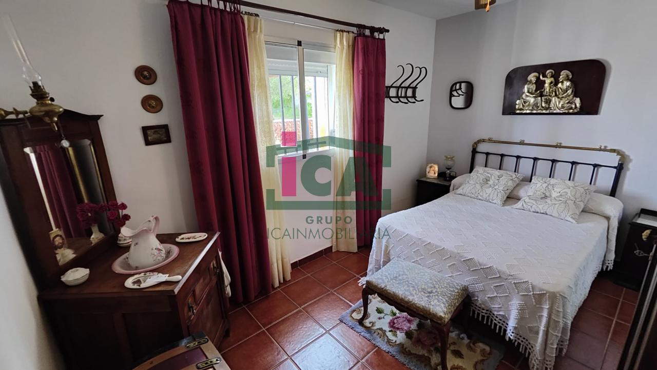 En cuanto a la vivienda tiene una superficie de unos 140 m2 aprox. todo en una sola planta, distribuida en porche cubierto de entrada con grandes ventanales, salón muy amplio con chimenea y ventilador de techo, cocina-comedor con gran despensa, 3 dormitorios todos con ventilador de techo y ventanas con mosquiteras, dos baños completos uno con bañera y otro con plato de ducha, buena carpintería, rejas en las ventanas, solados de gres rústico. Agua de red pública con su alcantarillado, además de pozo, luz eléctrica. Todo exterior y soleado.