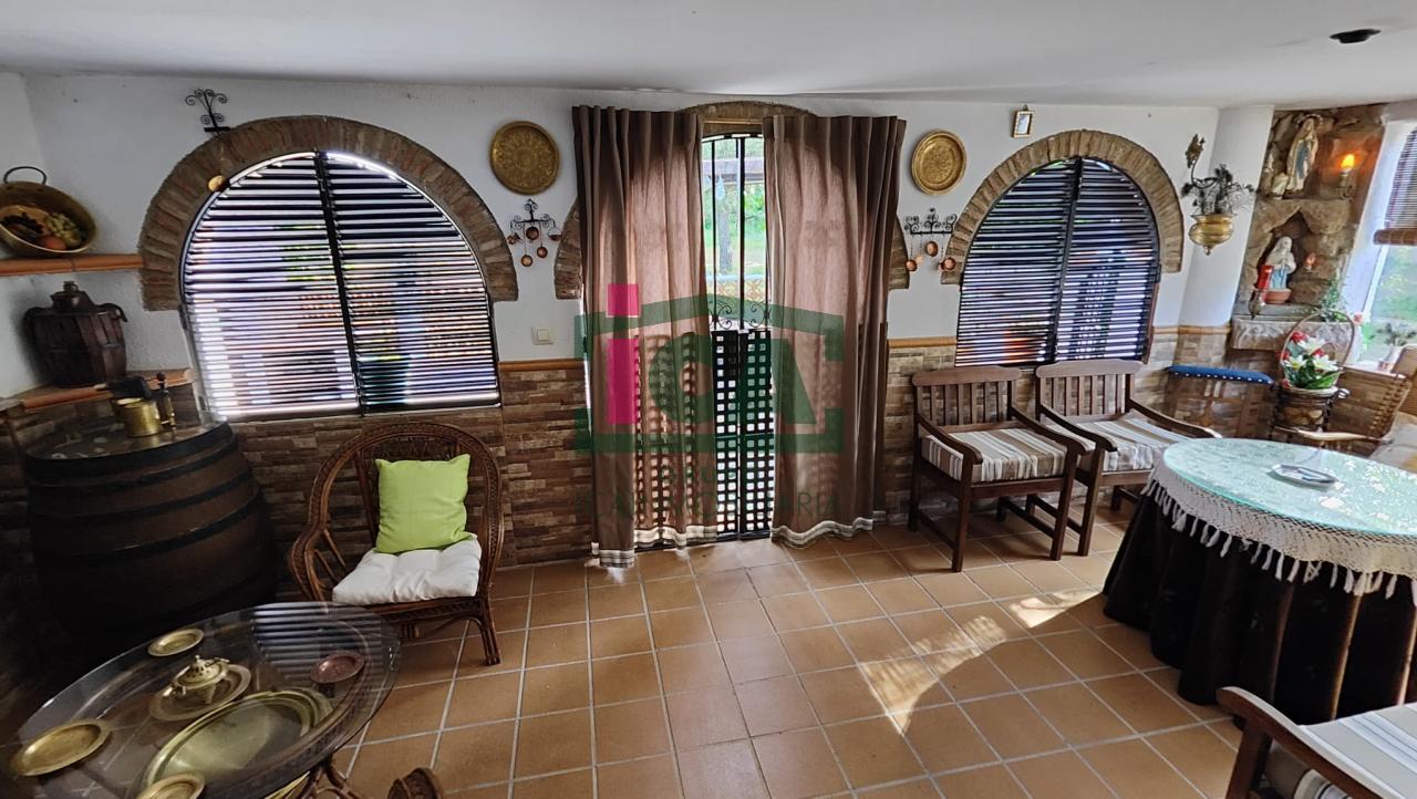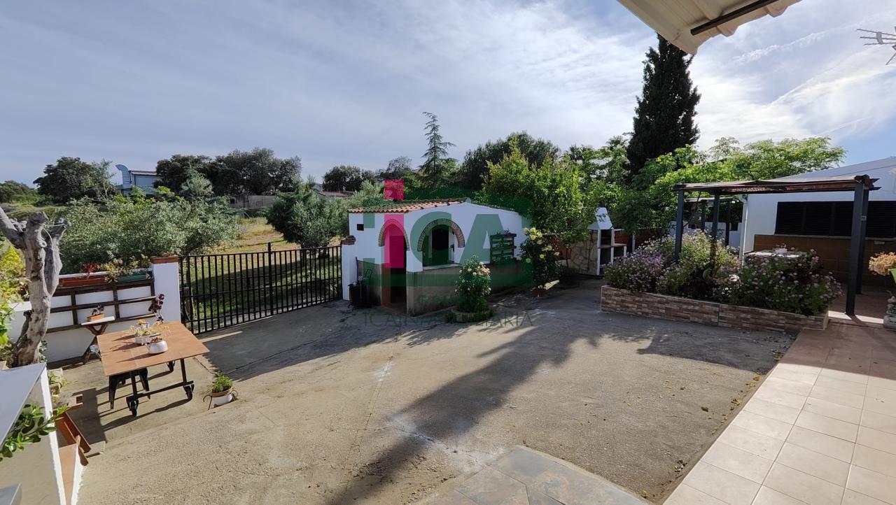 Chalet registrado ubicado en el monte del casar, a escasos minutos de Cáceres. La parcela se encuentra al comienzo del polígono, con cómodo acceso todo por carretera, cuenta con unos 4.700 m2 aprox., cerrada con alambrada, toda en llano, con varios tipo de arboles (olivos, encinas, abetos, pinos...) y arreates, en su exterior posee explanada hormigonada con cocina, para eventos, equipada con electrodomésticos y zona de fregadero, caseta de almacenaje, amplia zona de barbacoa, 2 cenadores cubiertos, además de pozo, gallinero cercado con casa de aperos.